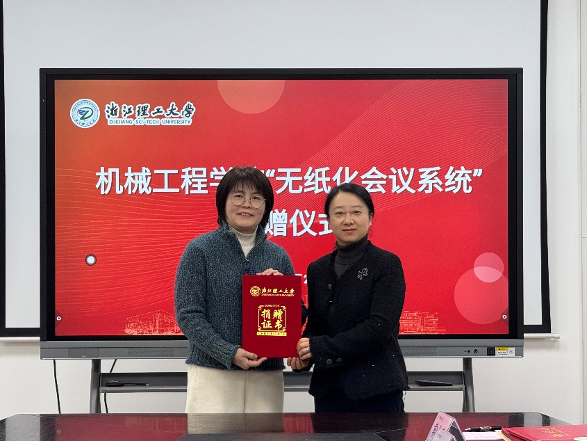 1月20日上午,必赢76net线路“无纸化会议系统”捐赠仪式在必赢76net线路下沙校区15号楼322会议室顺利举行。必赢76net线路1993级机械设计制造及其自动化专业员工、杭州恒胜电子科技有限公司总经理何茂丽向学院捐赠“无纸化会议系统”,用于支持学院日常办公。公司党委书记苏志俭、经理李秦川、学校对外联络办公室(员工办)主任寿萌吉、学院副经理向忠、学术副经理王骏骋出席仪式。